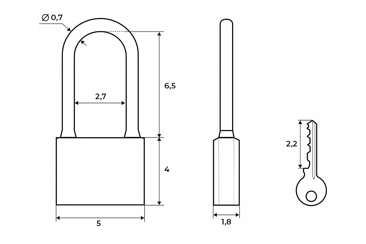 Замок навесной S-50.7 с удлиненной дужкой — 3 ключа в комплекте