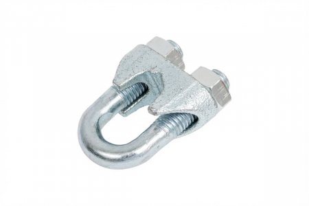 Зажим изготовлен из высокопрочной стали и покрыт защитным слоем цинка, который предотвращает образование коррозии и обеспечивает стабильную работу изделия при эксплуатации во влажной среде и на открытом воздухе. Конструктивное исполнение DIN 741 включает скобу, седло и крепёжные гайки, что позволяет равномерно распределять нагрузку на канат и исключать его повреждение при корректной установке.