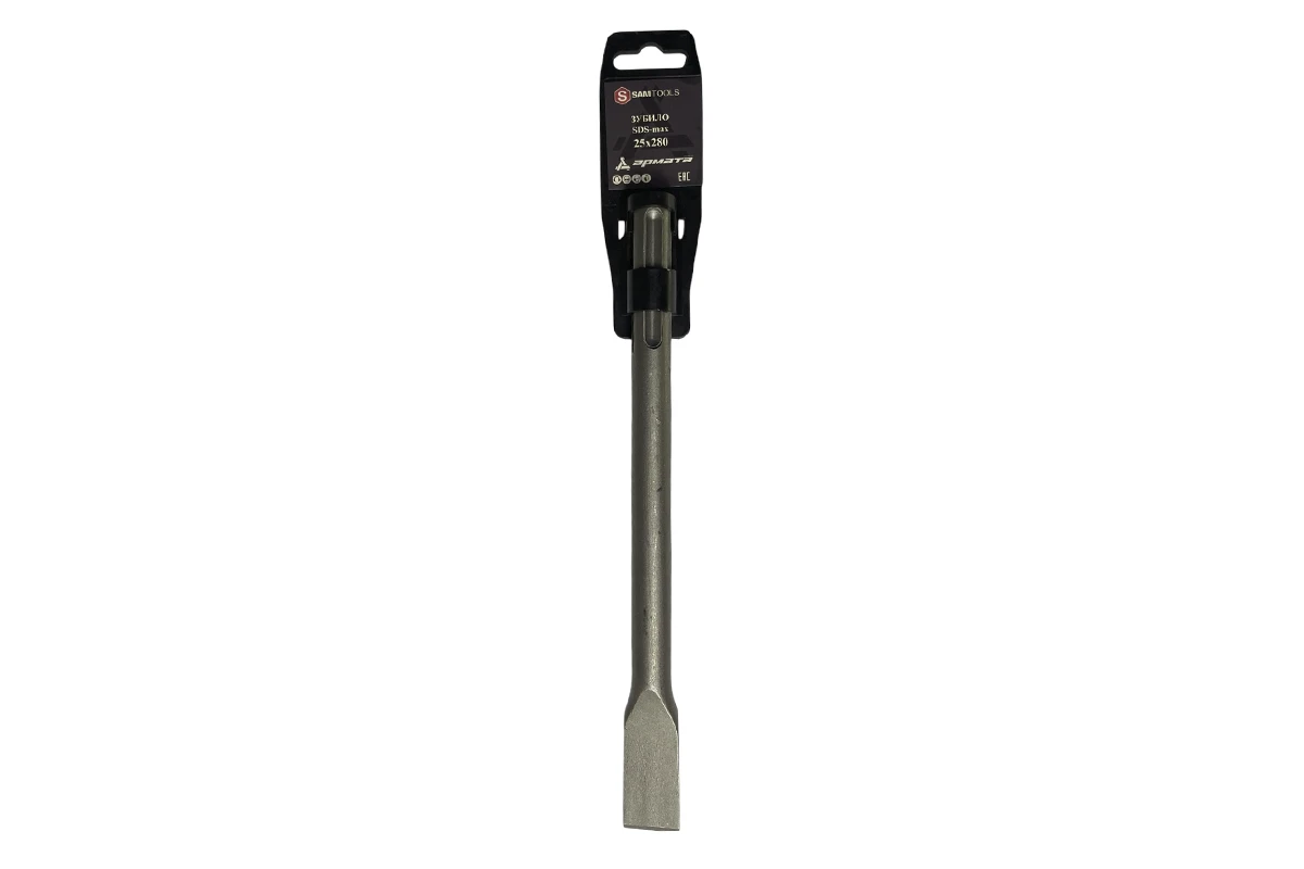 Зубило SDS-MAX 18x25x280 мм от компании SAMGRUPP - оснастка для мощных, тяжелых перфораторов.Предназначено для эффективного выполнения ударных, демонтажных работ с твердыми материалами, такими как камень, бетон, кирпич.